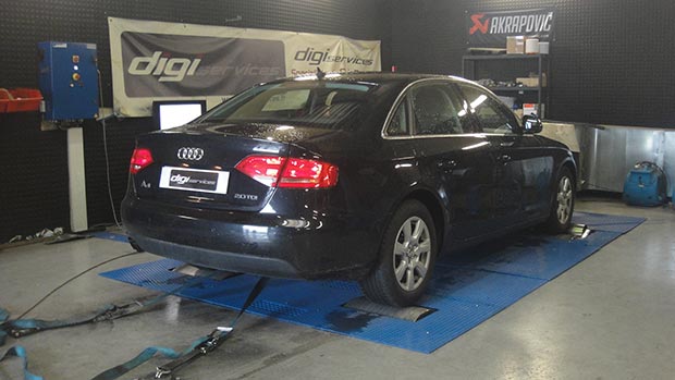 Préparation moteur AUDI A4 TDI 120 CV (125 CV) à 186 CV et augmentation du couple de 292 Nm à 395 Nm.