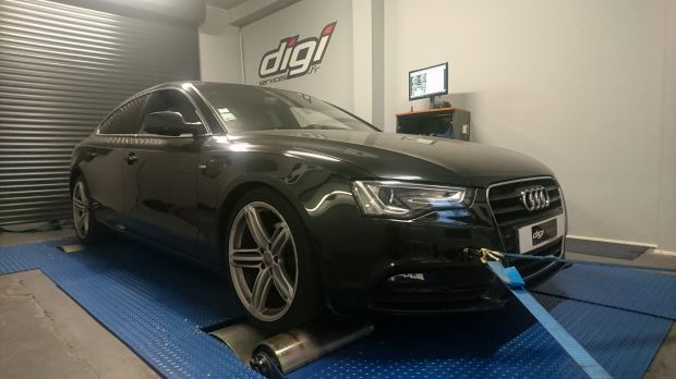 Reprogrammation Moteur sur une Audi A5 2.0 TDI de 177cv équipée d’une boite automatique.