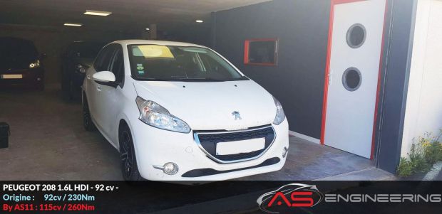 Reprogrammation moteur Peugeot 208 1.6L HDi de 92 cv à 115 cv et augmentation du couple de 230 Nm à 260 Nm