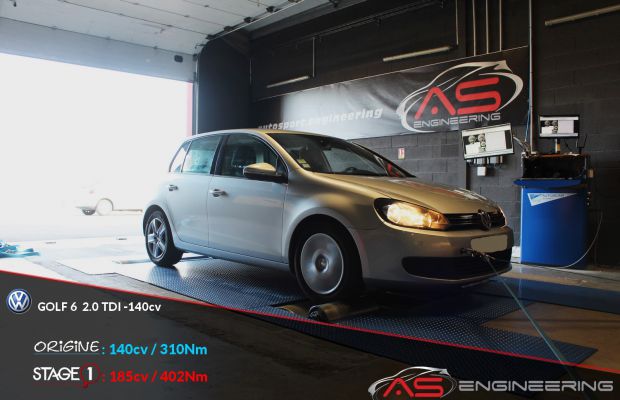Reprogrammation moteur VOLKSWAGEN GOLF 6 2.0TDI de 140 cv à 185 cv et augmentation du couple de 310 Nm à 402 Nm