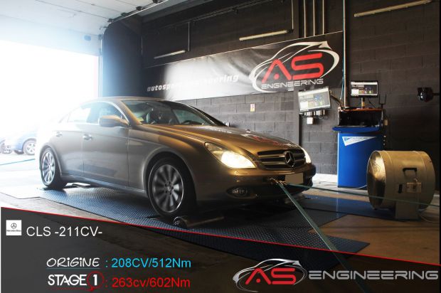 Reprogrammation moteur MERCEDES CLS de 208 cv à 263 cv et augmentation du couple de 512 Nm à 602 Nm