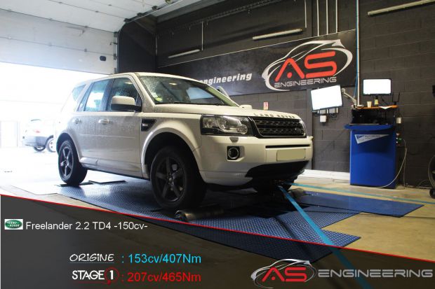Reprogrammation moteur LAND ROVER FREELANDER 2.2TD4 de 153 cv à 207 cv et augmentation du couple de 407 Nm à 465 Nm