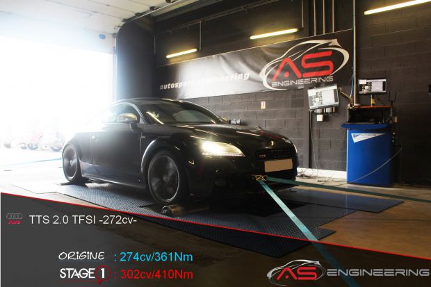Reprogrammation moteur AUDI TTS 2.0 TFSI de 274 cv à 302 cv et augmentation du couple de 361 Nm à 410 Nm