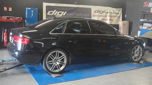 Reprogrammation moteur AUDI A4 TDI 240 CV (276 CV) à 306 CV et augmentation du couple de 543 Nm à 598 Nm.