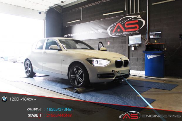 Digiservices Sud Ouest Reprogrammation moteur BMW 120D de 182 cv à 219 cv et augmentation du couple de 373 Nm à 445 Nm
