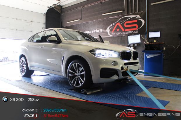 Digiservices Sud Ouest Reprogrammation moteur BMW X6 30D de 269 cv à 315 cv et augmentation du couple de 530 Nm à 647 Nm