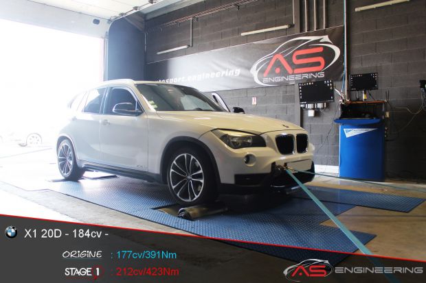 Digiservices Sud Ouest Reprogrammation moteur BMW X1 20D de 177 cv à 212 cv et augmentation du couple de 391 Nm à 423 Nm